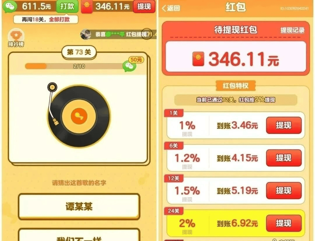 每通关一次,系统发放小额红包,页面右上角显示可提现余额,左上角金额多为装饰性道具,不具实际提现功能。