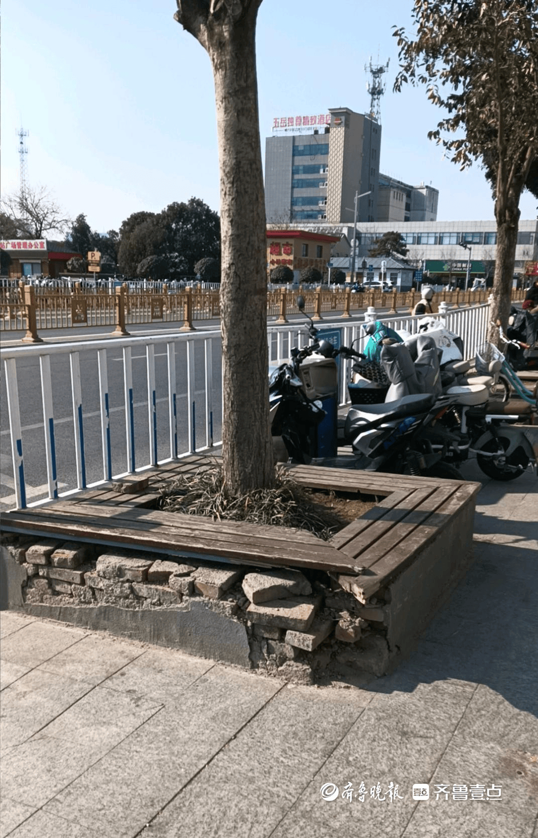 1月7日,情报员“孤芳自赏”向齐鲁晚报官方客户端齐鲁壹点情报站发来报料称,泰安市火车站路北侧一处行道树池破损,老化严重,露出方砖,木板出现油漆脱落和破损断裂的现象,不仅影响市民休憩,还存在一定的安全隐患。