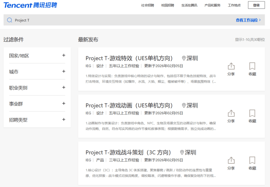 近日,腾讯通过招聘官网曝光了一款3A单机游戏:《Project T》,从招聘信息来看,该作明确是一款使用UE5打造的单机游戏,属腾讯IEG旗下,目前释出的岗位数量不多,且包含游戏主策、主程等核心岗位,这可能意味着该作仍处于早期开发阶段。