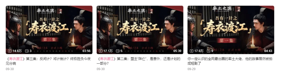 更关键的是,官方长期与玩家共创,不仅筹建了“率土玩家故事博物馆” 收录这些玩家传奇故事,还将玩家故事改编为 AI 短剧,比如十周年期间推出的《吾有一计》系列,其中“寿衣渡江” 等作品播放量突破50万,直接验证了这类内容的传播潜力。