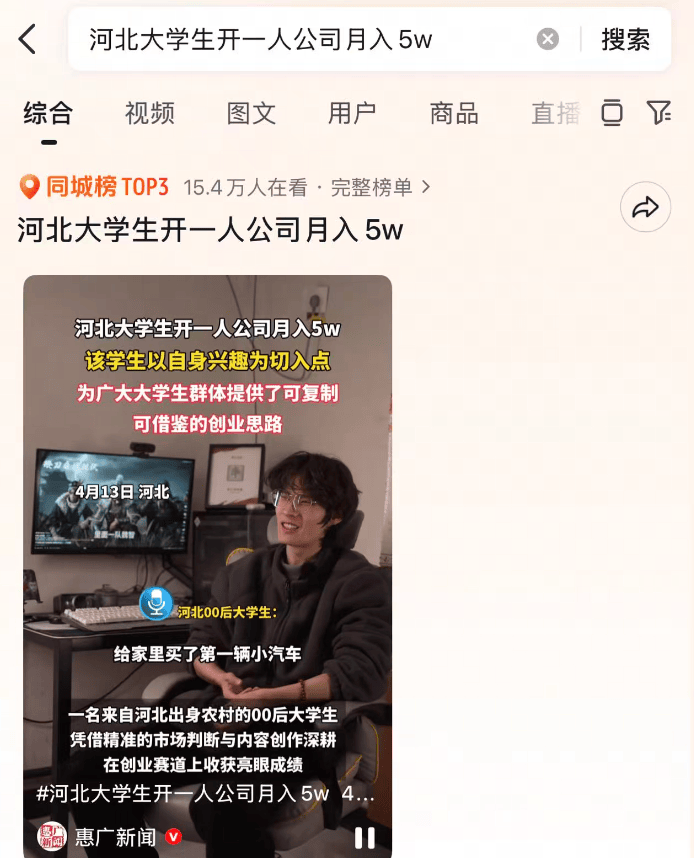 他的“月入5万”的采访视频成功冲上抖音热搜,先后登上同城榜TOP3、社会榜TOP18,超29万人在线围观,热度可见一斑。